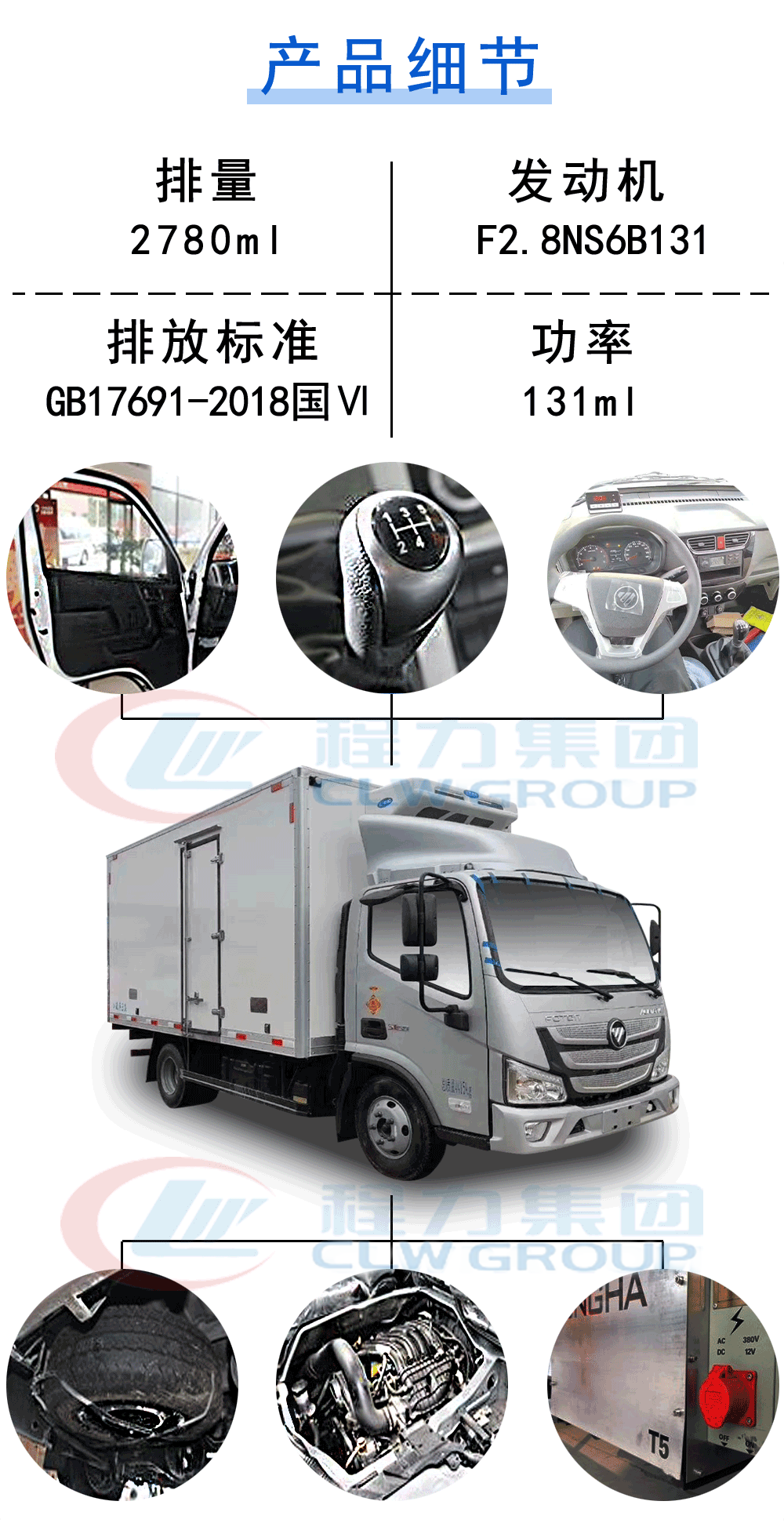 | 其他 | 1.选装导流罩;选装两侧单、双、无侧开门;选装同等功率制冷机组,外观形状可不同.2.ABS型号及厂家对应关系:液刹:ABS系统型号:YF8;生产企业:武汉元丰汽车电控系统有限公司.气刹:ABS系统型号:ABS-VI.E;生产企业:广州瑞立科密汽车电子股份有限公司.3.F2.8NS6B131、F2.8NS6B156发动机最大净功率分别为93kw、112kw.4.选装前围及前部灯具,前下视镜为选装件可不装,选装排半驾驶室,排半驾驶室对应货箱内部长度为3700mm,单排驾驶室对应货箱内部长度为4080mm.5.侧防护的连接方式是与货箱横梁螺栓连接,侧防护材料为冷板B-2.0/20,选装材料为20号钢的侧防护、选装铝合金6061-T6侧防护.后防护连接方式是与车架纵梁螺栓连接,后下部防护装置材料为Q345A,选装材料为AL6082-T6的后下部防护装置。后部防护装置截面尺寸100×50mm,后防护距离车辆离地高度470mm;6.发动机F2.8NS6B131、F2.8NS6B150、F2.8NS6B156对应油耗值为10.8;7.货厢顶部封闭,不可开启.8.准拖挂车总质量为3500kg,中置轴挂车的牵引杆深入量750mm,中置轴牵引杆连接器最大负荷350kg. | ||