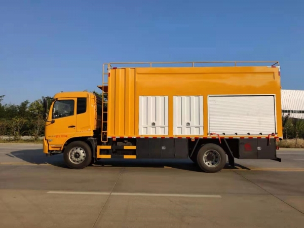 【车辆结构】吸污净化部分:汽车底盘、厢式结构,内部主要固定装置为:发电机、真空泵、排污泵、分离箱、污水箱、加药箱、混凝槽、叠螺机。高压清洗部分:水箱、柱塞泵、液压卷盘组成。