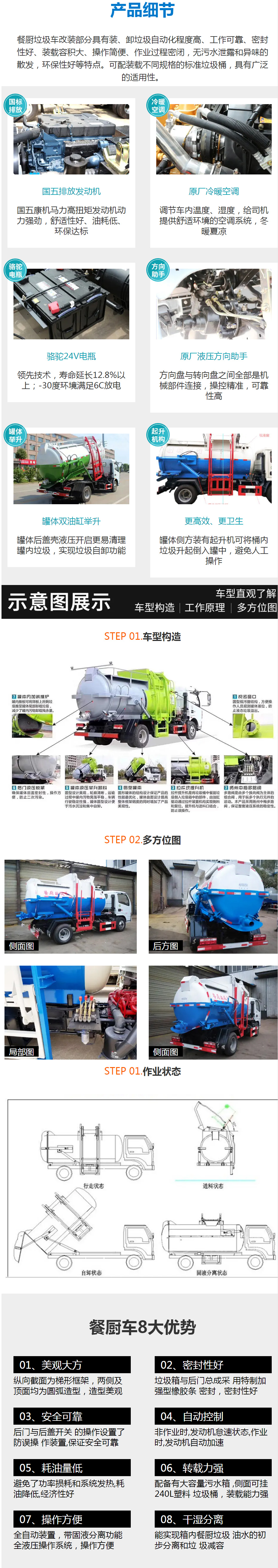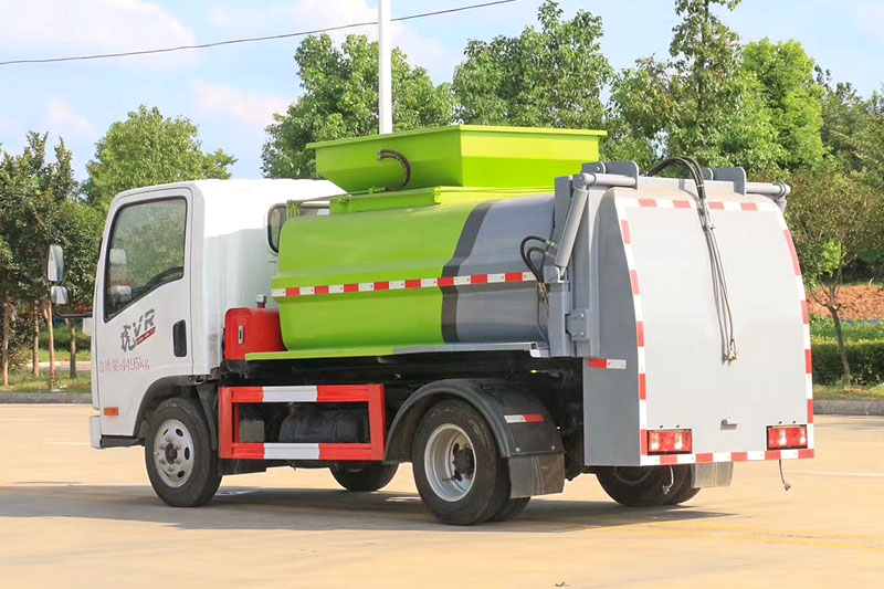 (5)提升机挂240L标准塑料垃圾桶。进料口盖液压开关。