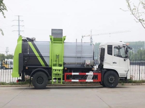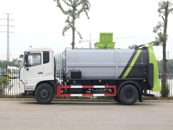 餐厨垃圾车,又称餐余垃圾车、余厨垃圾车或者泔水车,餐厨垃圾车是垃圾车中的一种,是用于收集和运输生活垃圾、食品垃圾(泔水)专用车辆。上装由箱体、后门总成、后门开启机构、密封锁紧机构、推板机构、挂桶提升机构及操纵机构等组成。有装、卸垃圾自动化程度高、工作可靠、密封性好、装载容积大、操作简便、作业过程密闭,无污水泄露和异味的散发,环保性好等特点。餐厨垃圾车不仅优化了居民居住的环境卫生,减少了空气中的餐厨垃圾臭味,减少孳生蟑螂、细菌的可能, 改善了环卫作业环境,减少垃圾的四处分散造成的污染。