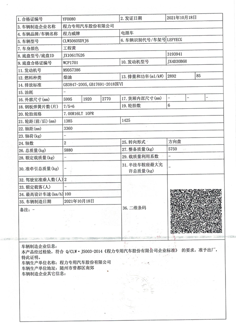 CLW5080XDYQ6电源车
