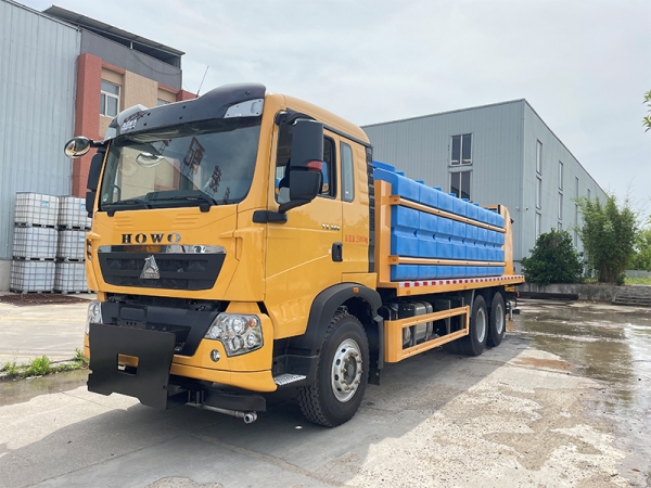 除冰撒布车主要由重汽豪沃牌ZZ1257N464GF1型二类汽车底盘、液罐装置、液路装置、液压装置、电气控制装置、喷撒装置、监控及定位系统等组成。除冰撒布车能全天候工作,具备良好的防水、防潮、防腐蚀功能。