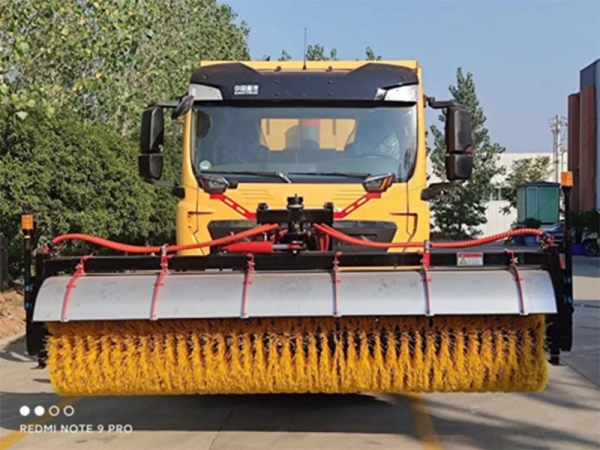 以底盘发动机取力器为动力源,带动液压马达高速旋转,进而驱动滚刷高速旋转,来清扫推雪装置作业后遗留下的残雪,提高路面的洁净率。