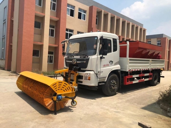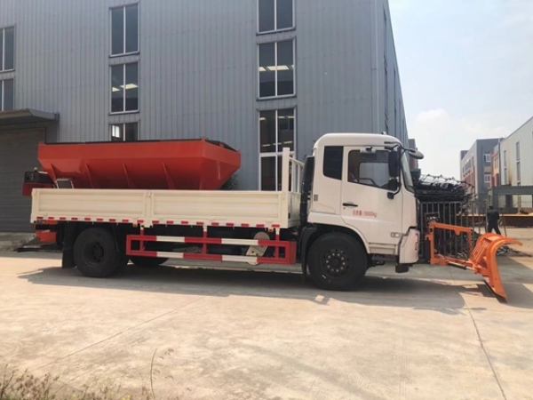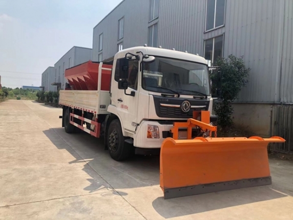 ABC5180TCXD6型除雪车,底 盘 型 号DFH1180EX8,上 装 由 箱 体、融 雪 撒 布 机、除雪刷、除雪铲、电气系统、液压系统以及其他附件组成。
