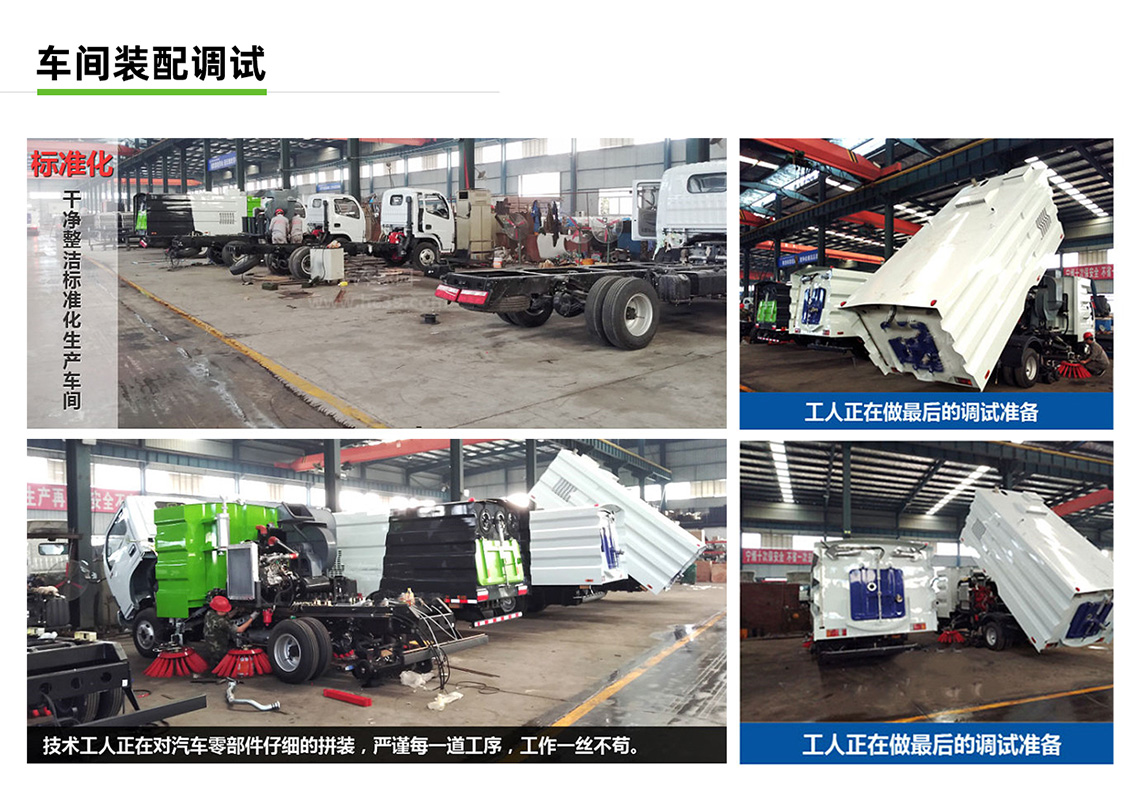 带扫盘4把,江铃副发动机;大力马达;施耐德控件开关;台湾电磁阀组;免维护自分离式离合器;免维护风机;不锈钢水箱;不锈钢垃圾箱;尾部LED箭头灯;手动泵应急系统;刷臂转动机构使用高新耐磨工程隔套,免打黄油;精密冷弯无缝液压油管。