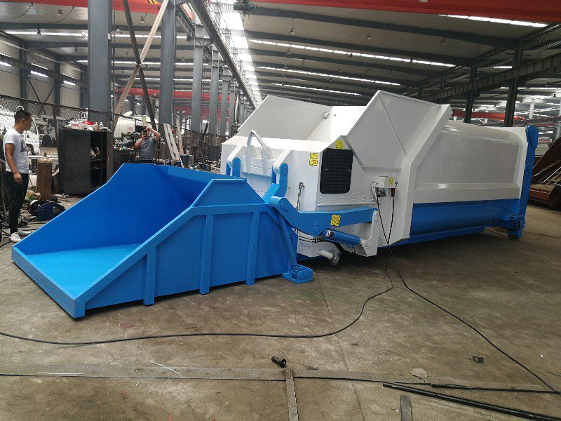 压缩头由耐腐蚀高强度合金钢板焊接而成,采用无导轨设计,四周间隙小,可有效防止垃圾滞留在机体内。压缩腔内设置固定抓钩,可防止压挤进去的垃圾回弹,压缩推板采用双曲线外形设计,可使压缩比达到大,投料口大,投装垃圾更方便。压缩头的所有部件均进行了严格的防腐、防锈、耐磨处理。