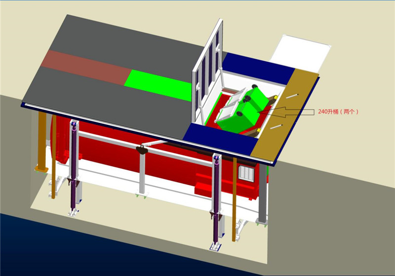 只要将地埋式垃圾箱上盖打开,垃圾箱的推头就会把推头室的垃圾推到垃圾贮料仓从而达到垃圾压缩功能。