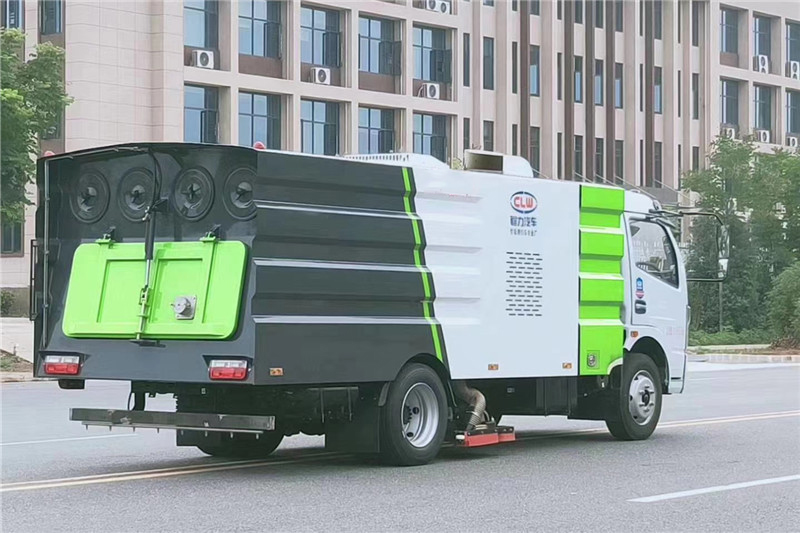 东风多利卡7.5方吸尘车专用配置:尘箱:6立方米,水箱:2立方米;中置吸盘、江铃五十铃副发动机、施耐德控制开关、海普瑞斯电磁阀组、无级变速自动离合器、免维护离心式风机、高精度垃圾箱过滤系统(最高可达0.5微米),不锈钢垃圾箱、进口脉冲阀、垃圾箱举升自卸、尾部LED箭头灯、车尾雾状喷水润湿功能、倒车影像、手动泵应急系统。